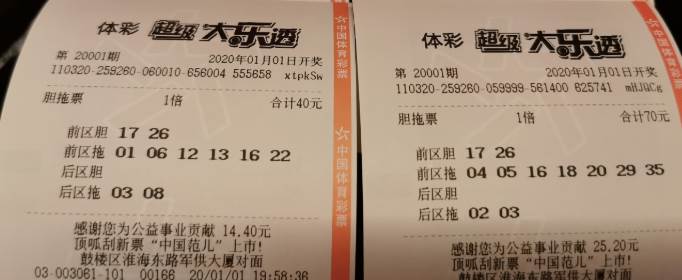4、四等奖:投注号码与当期开奖号码中的任意四个前区号码及两个后区号码相同,即中奖;