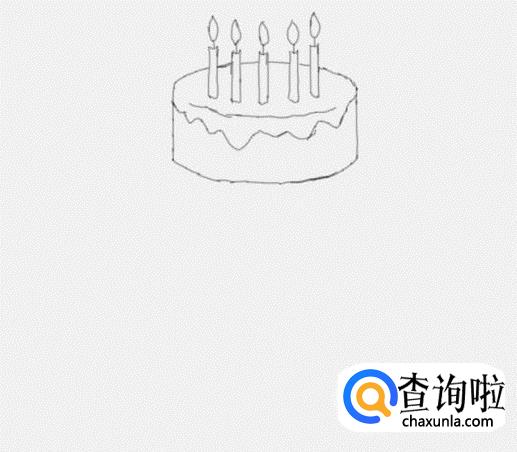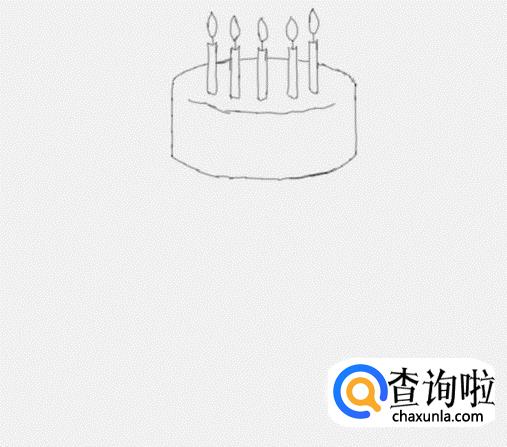 在生日蜡烛的下面我们画出最上面的一层蛋糕的轮廓,如图所示: