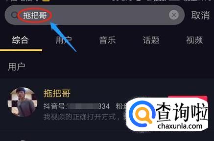 我们只需通过一些网络流行词就能找到时下较为人们的达人或者视频,比如前段时间霸屏的“拖把哥”,找到以后点击头像就进入到他的主页,找到其中的某一个短视频按照刚才的合拍流程进行就可以;
