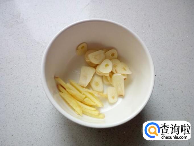 姜切成丝,蒜切成片,准备好红干椒,备用。