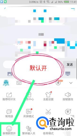 然后又是在界面的左下角,找到表情联想开,这时APP默认打开的。