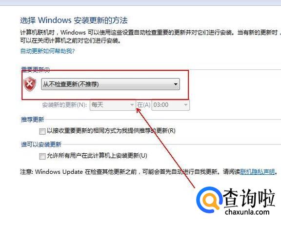 将重要更新更改为“从不检查更新(不推荐)”选项即可