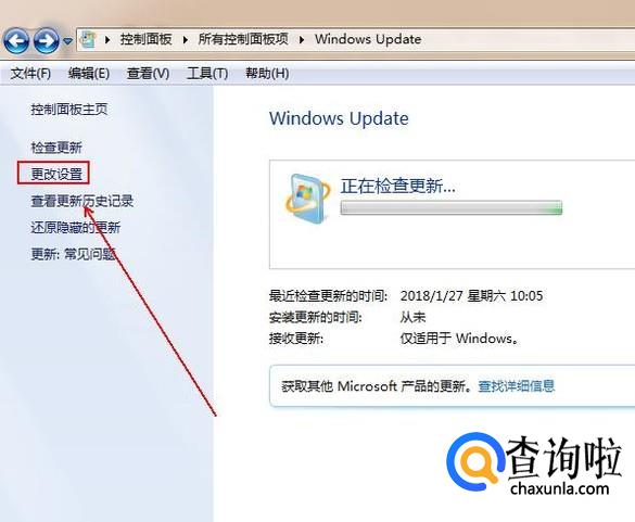 在“Windows Update”中点击“更改设置”选项。