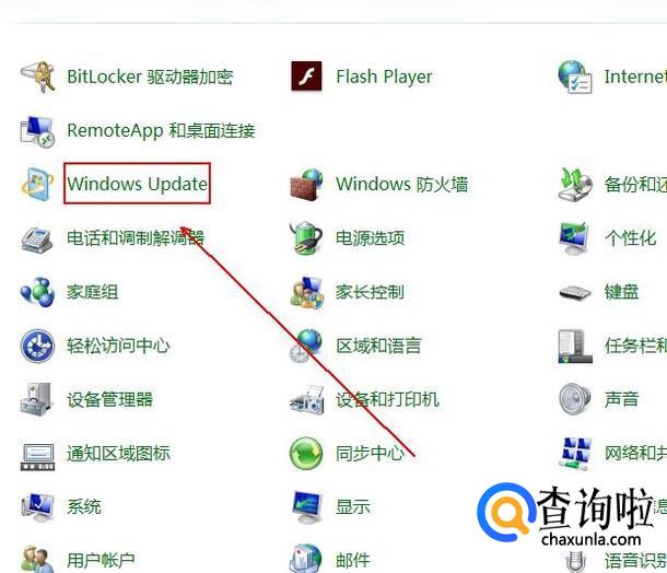 在程序列表中单击“Windows Update”选项。