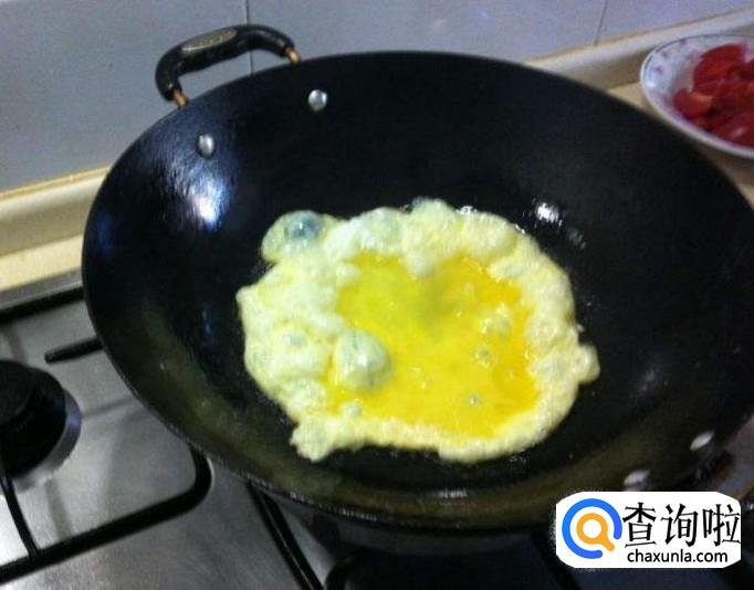 锅中加入适量植物油,尽量多倒点油,油热后倒入鸡蛋,鸡蛋凝固后,倒入小豆芽和洋葱。