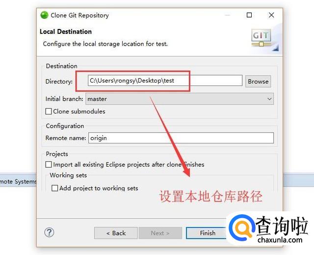 接下来设置一下本地的仓库地址,同步的内容就会保存到这个地址下面,如下图所示