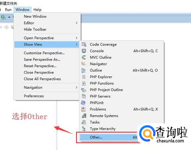 首先打开Zend Studio软件,点击顶部的Window菜单,选择下拉菜单中的Other选项,如下图所示