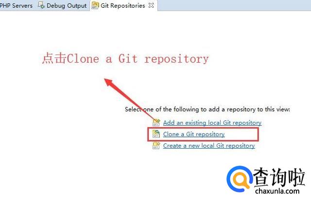 然后我们会在底部看到出现了Git Repositories页卡,我们点击Clone a Git Repositories链接,如下图所示