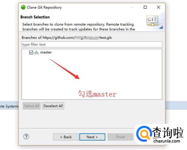然后会进入Branch Selection界面,我们勾选master复选框,如下图所示