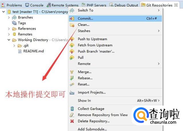 最后我们就可以在本地修改Git仓库的内容,然后右键进行提交了,如下图所示