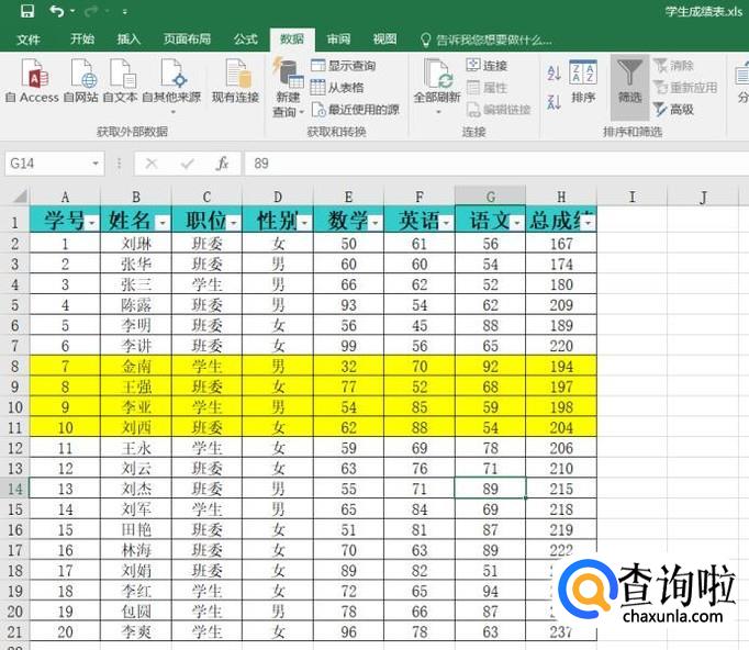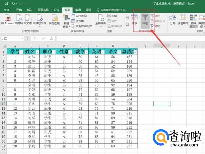接下来,我们点击软件顶部的“数据”选项卡,可以看到“筛选”按钮已经处于启用状态。