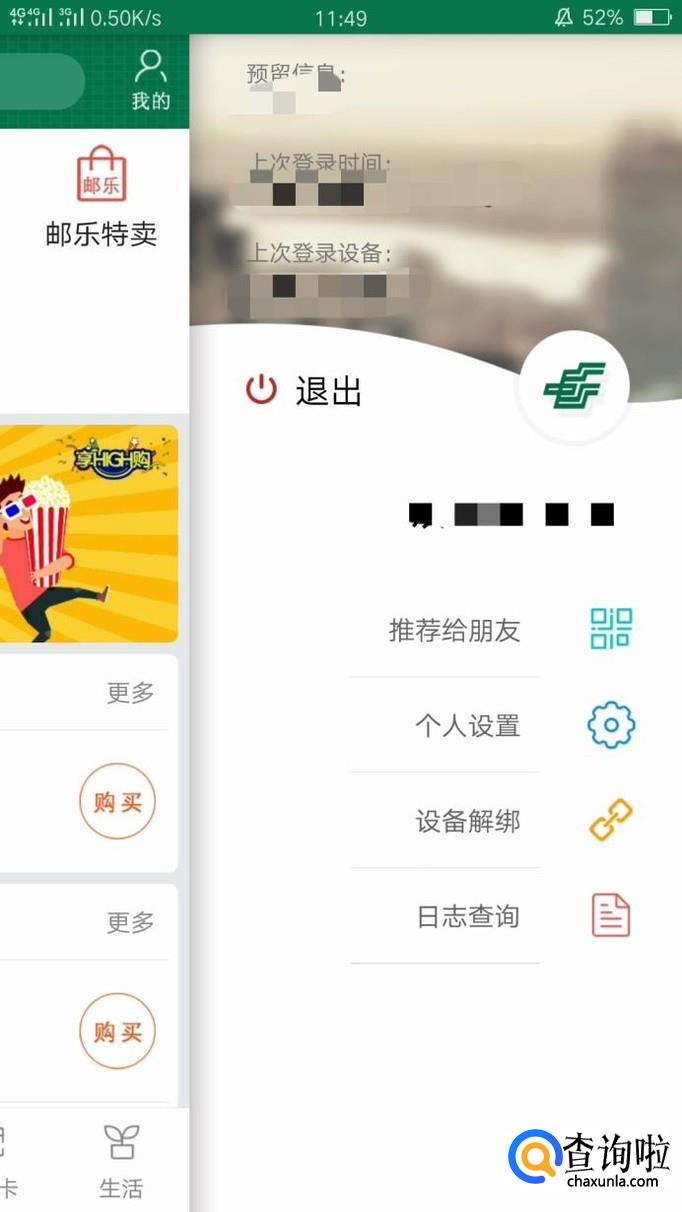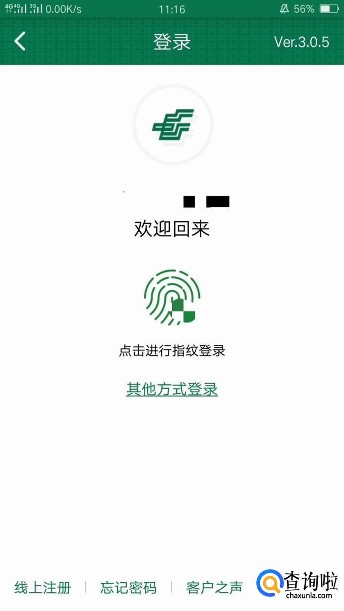 首先需要下载中国邮政储蓄银行的手机银行APP,然后进行银行卡的绑定,绑定之后点击右上角的“我的”,输入密码或指纹进行登录。