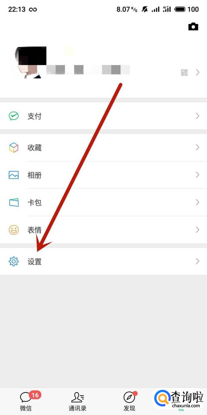 在微信“我”页面点击“设置”,进入下一页面,如图所示。