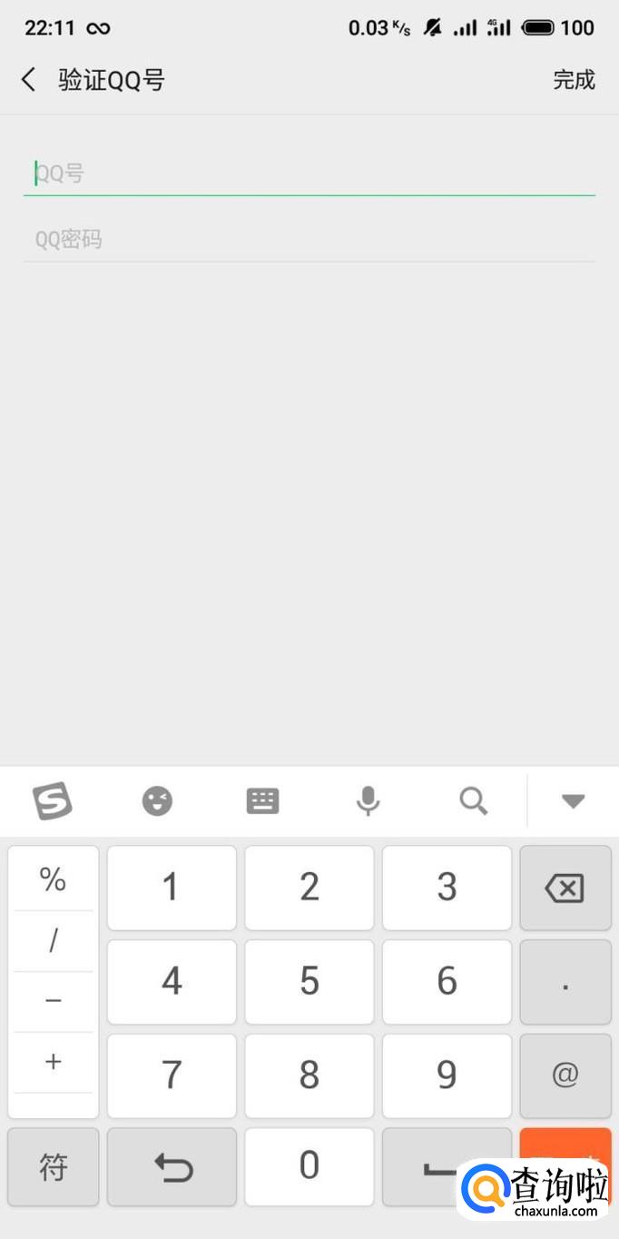 进入之后,输入QQ账号和密码,点击“完成”即可将QQ与微信绑定,以后在登陆微信的时候就可以用QQ进行登陆,如图所示。