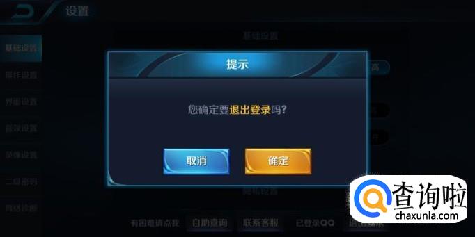 系统提示你是否确定退出,选择黄色按钮--“确定”,退出QQ区。返回选取界面。