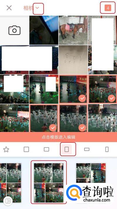 在下一界面中,我们选择照片,并进行布局,如图所示,完成照片布局后点击右上角按钮保存。