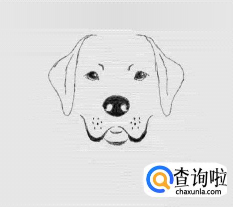 最后在狗的胡须两侧画出狗的嘴巴及嘴巴上的斑点,这样简笔画狗的头部就画好了,如图所示: