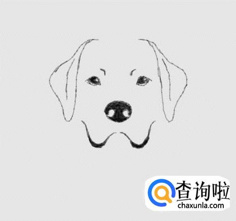 在眼睛下面画出狗的鼻子,然后在鼻子上画出狗的鼻孔,如图所示: