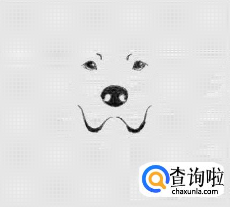 在鼻子下面画出嘴巴上狗的胡须,如图所示: