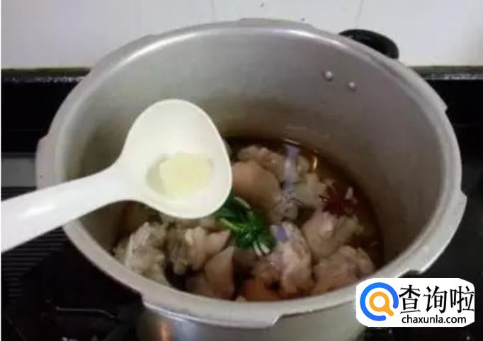 再加点啤酒,冰糖,生抽,老抽,最后加上水和盐。用高压压40分钟左右。