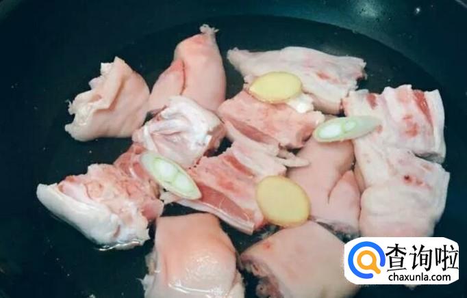 然后放入锅里焯水,可以放一点姜片和葱去腥味。