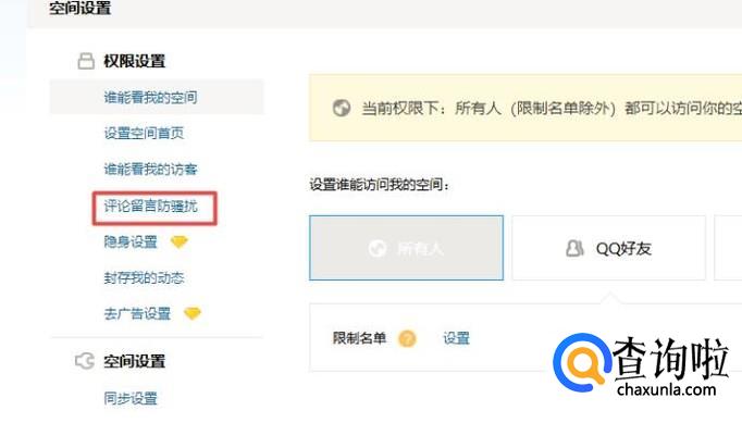 然后我们点击评论留言防骚扰;