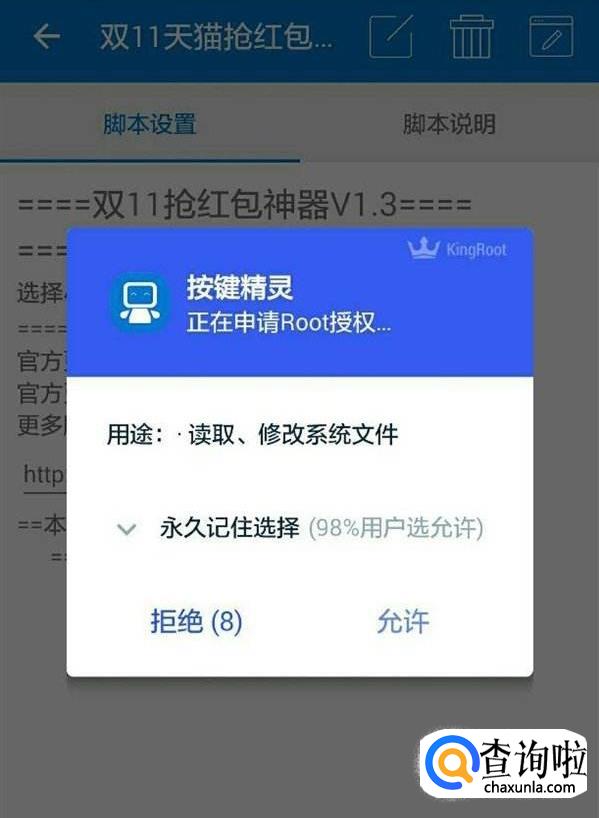 手机设置,ROOT权限管理中给予"Xposed Installer"、"微X模块"应用的root权限,页面选择允许即可;