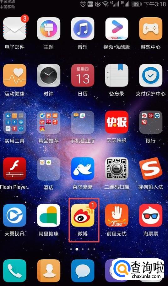 首选,我们打开我们的手机,然后我们点击手机桌面上的微博;