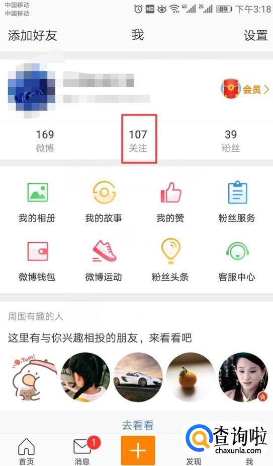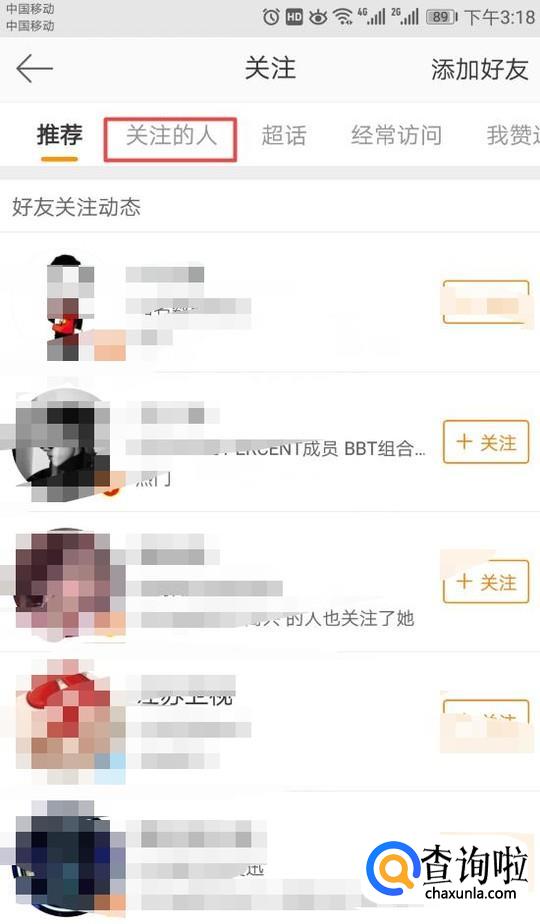 弹出的界面,我们点击关注的人;