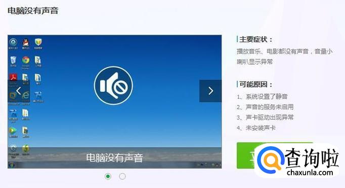 接着点击电脑没有声音,如下图所示。