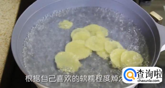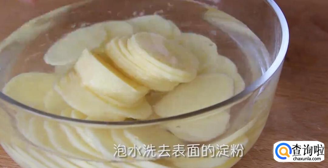 将土豆切片,可以稍微切厚一点,后面煮的时候不容易碎。