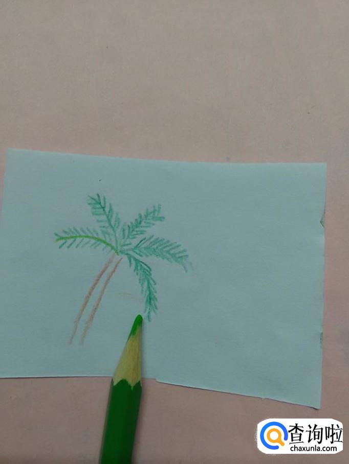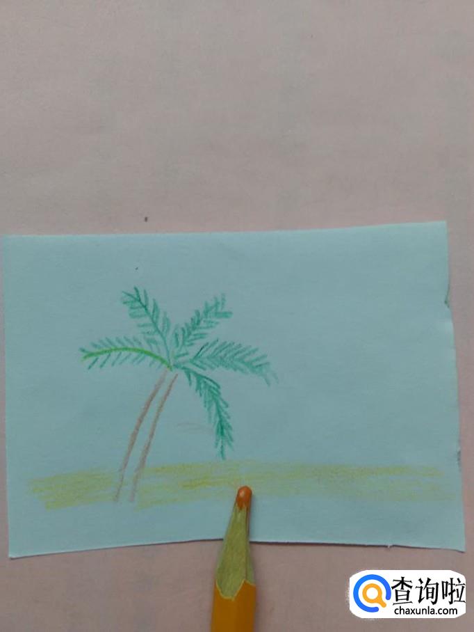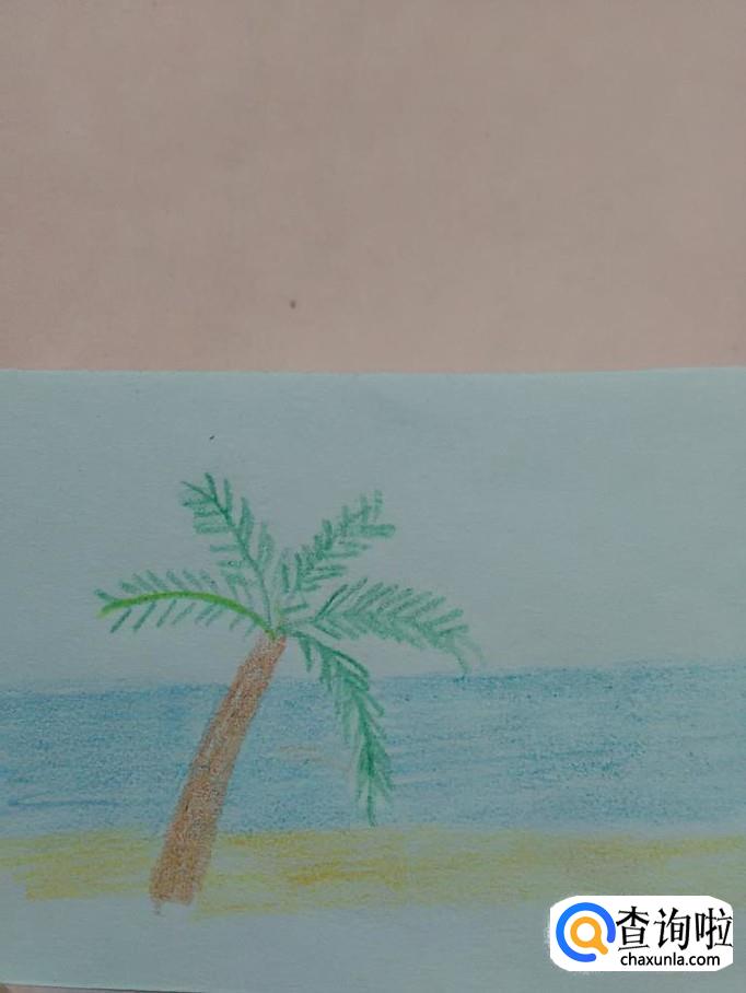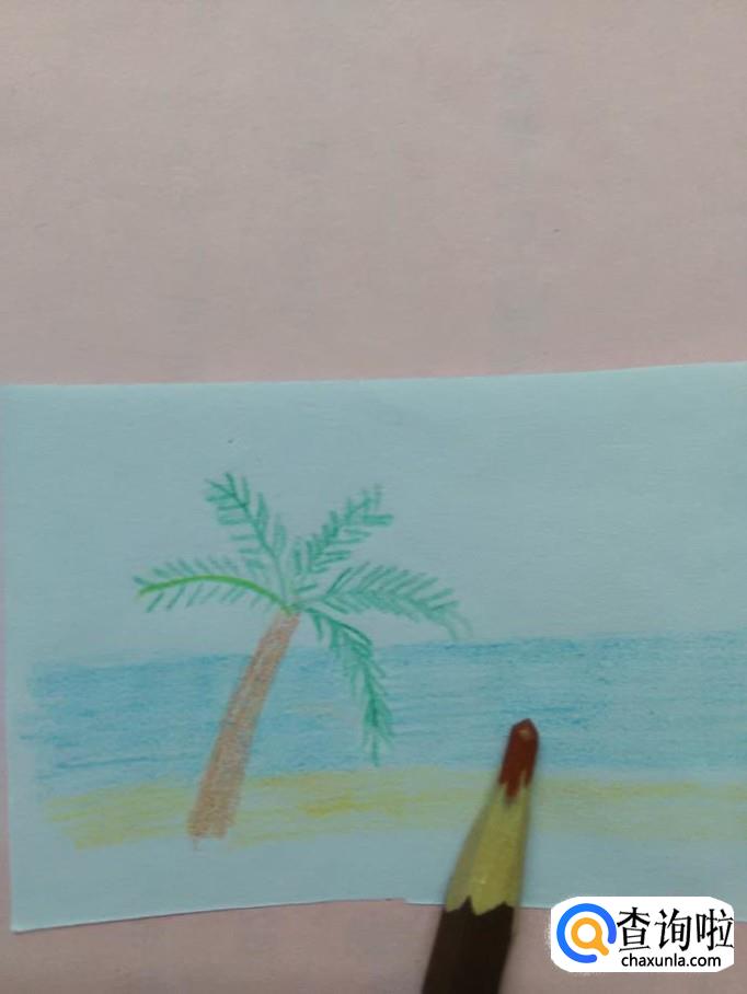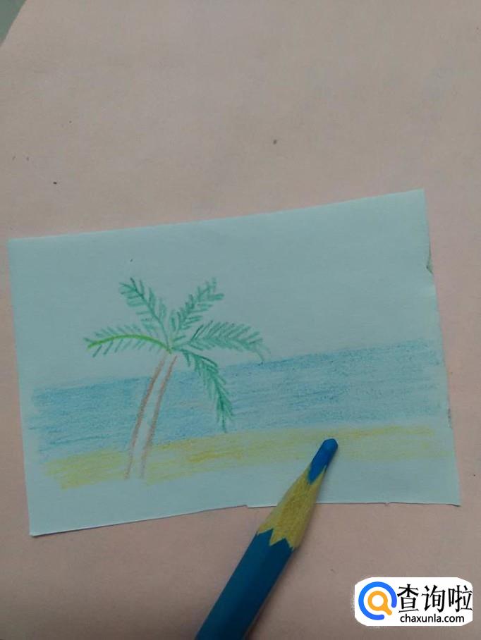最后,用棕色笔将树干涂成棕色,海边就画完了。