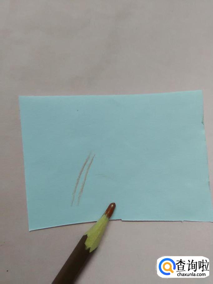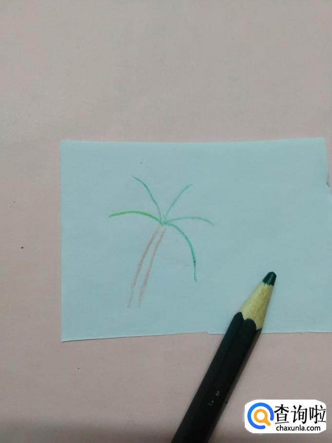 先用棕色笔在纸上画两条弧线,表示椰子树的树干。