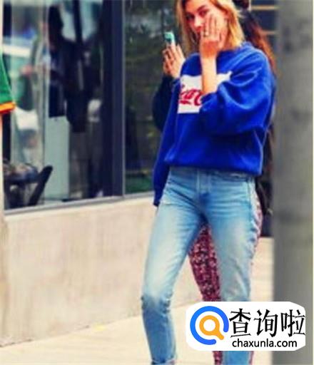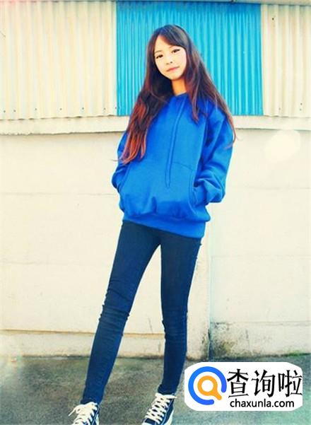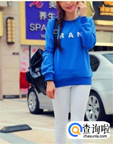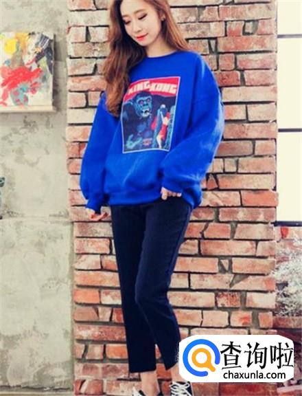 淡蓝色牛仔裤搭配一件宝蓝色卫衣,这种搭配也是青春时尚的女孩子们喜欢的,随性、率真且休闲,。