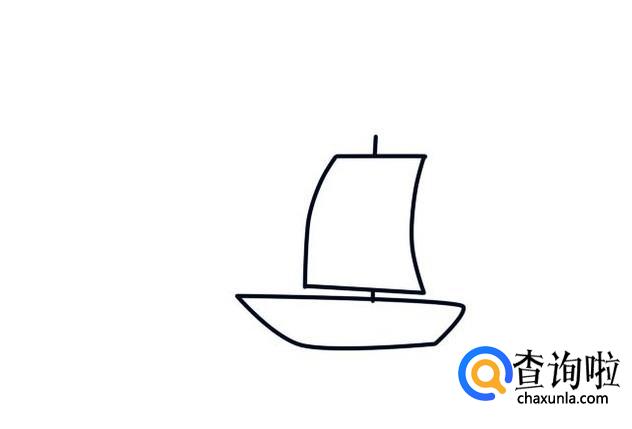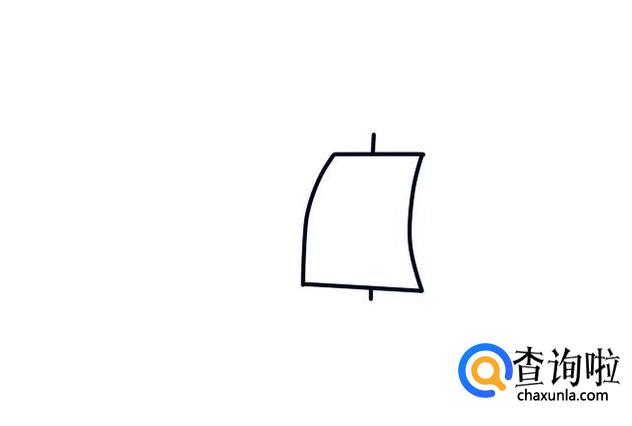 先画一个四边形,四边形的上下两条边是平行的,两侧的两条边都画成弧线,这个四边形表示船帆。