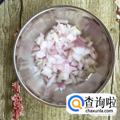 取一小块洋葱,将洋葱的最外面一层剥掉,清洗一下,再切成小块;