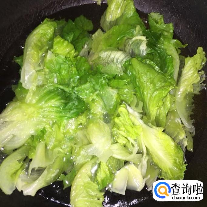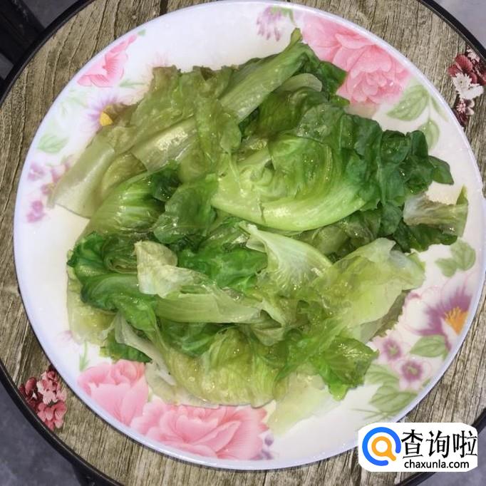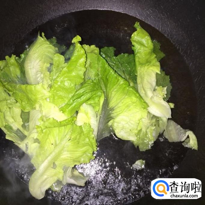 在锅里加入适量的清水,将水煮到沸腾,把生菜两三叶放入,稍微混一两下,就可以出锅了;