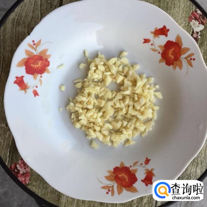 取五六个蒜头,将蒜头的外膜撕掉,洗净,再剁碎一点;