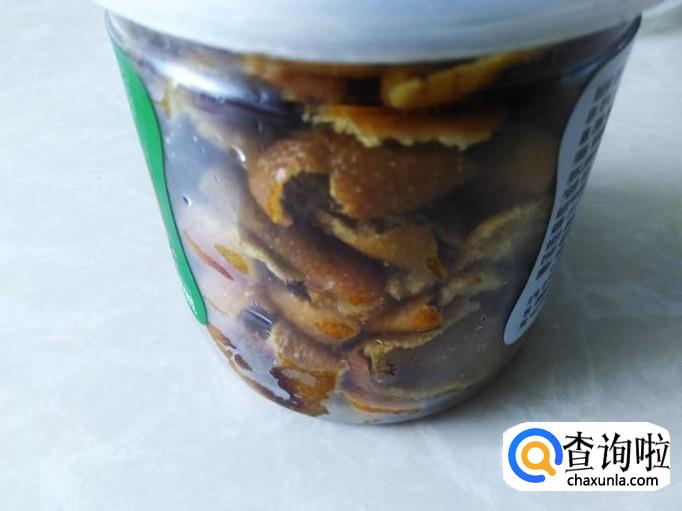 已经经过4次又蒸又烤又腌制的陈皮就做成了,然后装到瓶子里密封放到冰箱随时都可以食用了。