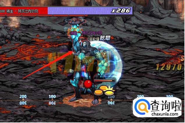 接下来进入第二关,就要注意保持和怪物的距离啦,然后不断的放技能,如下图所示:
