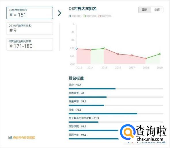 注:QS世界大学排名是世界公认最具影响力的全球性大学排名之一,主要评价指标为:学术领域的同行评价(40%)、全球雇主评价(10%)、单位教职的论文引用数(20%)、教师/学生比例(20%)、国际学生比例(5%)、国际教师比例(5%)