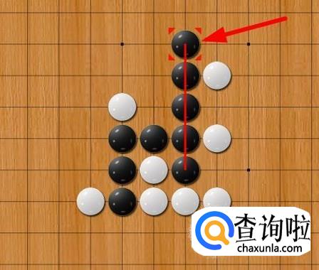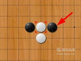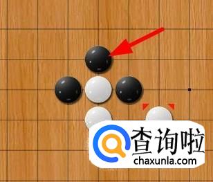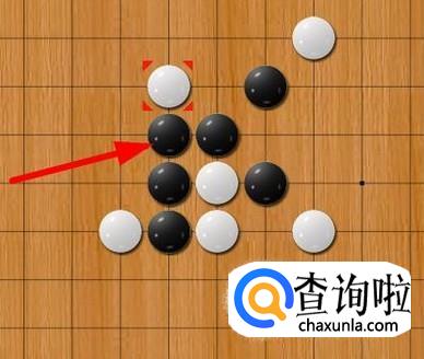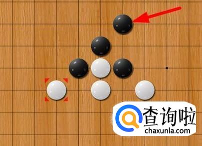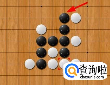 黑子落在紧挨着的两个黑棋子上方就是箭头所指的棋子