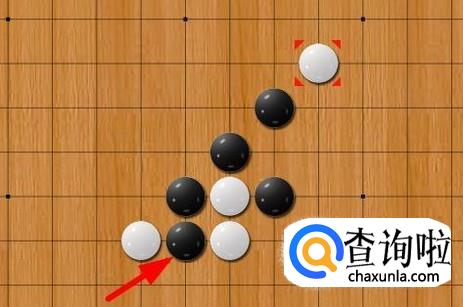 黑子落到白子上面堵住白子的去路就是箭头所指的棋子