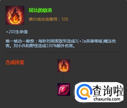 • 配方:第2阶打野装备+斑比的熔渣+350金币(总共2200金币)