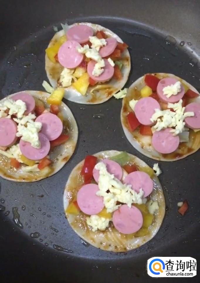 饺子皮,披萨酱,芝士,蔬菜,火腿