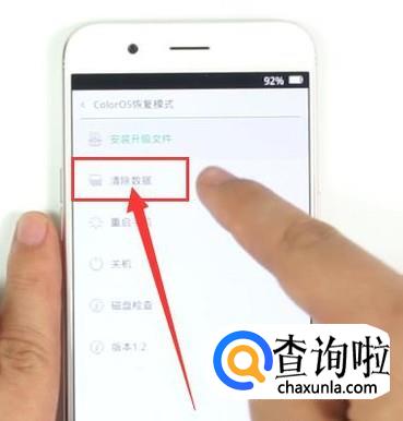 在colorOS模式界面,点击“清除数据”,进入下一界面。