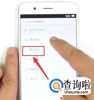 返回到上一界面,点击“重启手机”即可解决忘记密码解不开锁的问题。