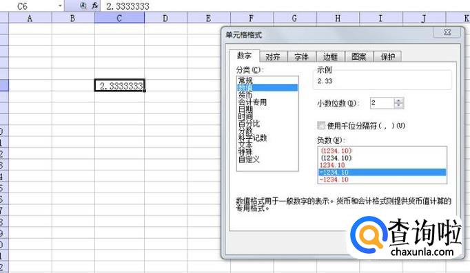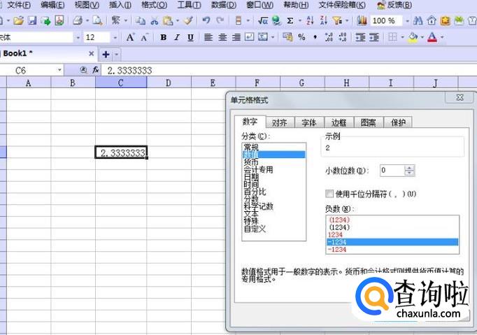 在单元格格式选项框中,选择分类中的数值,然后在右边的小数位数中选择0,点击确定后,多位小数的数就取整了,如果想取余数,就将小数位数设置成自己想要的位数,点击确定后就可以了。
