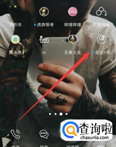 打开手机,找到全民K歌,点击并进入,如图所示。