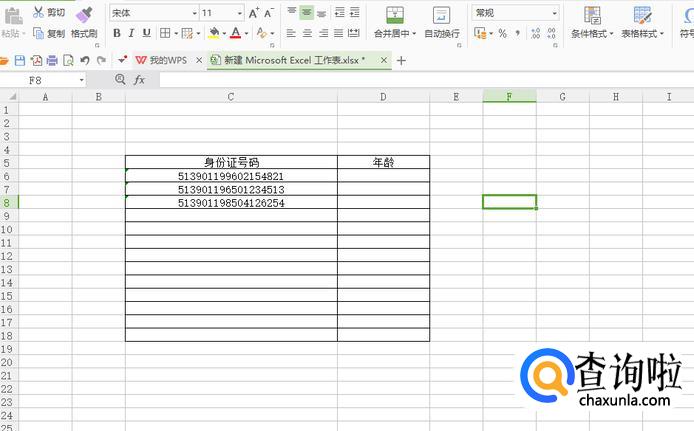 打开电脑excel软件,如下图,这里小编随意输入了一些身份证号。